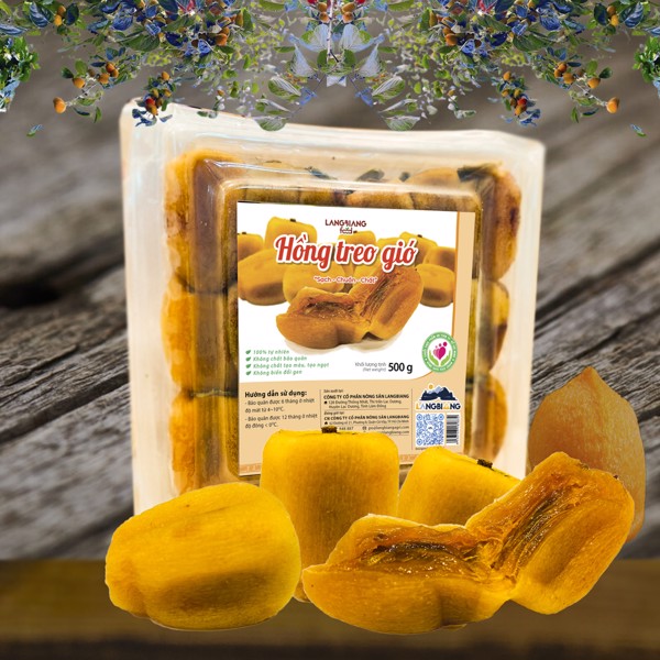 Hồng treo gió LangbiangFood có vỏ vàng sậm, dẻo dẻo, giòn giòn, ngọt thanh tự nhiên và đậm hương vị núi rừng Langbiang!Hồng treo gió LangBiang được nhiều khách hàng trong nước và kiều bào nước ngoài ưa chuộng bởi các yếu tố:- Có nguồn gốc, xuất xứ rõ ràng.- Nguyên chất & tự nhiên 100%.- Đảm bảo ATVSTP.- Mùi, vị đặc trư