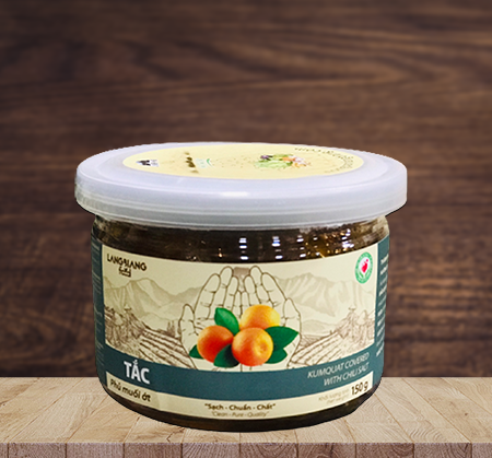 Thành phần: Tắc, đường, muối ớtHDSD: Sử dụng trực tiếp.Bảo quản: Nơi khô ráo, thoáng mát, tránh ánh nắng trực tiếp.HSD: 18 tháng kể từ ngày sản xuất.NSX: Xem trên bao bì.Lưu ý: Không sử dụng sản phẩm khi có dấu hiệu hư hỏng.Xuất xứ: Việt NamKhối lượng: 150g Ingredients: Kumquat, sugar, salt, chili.Instruction: Eat dire