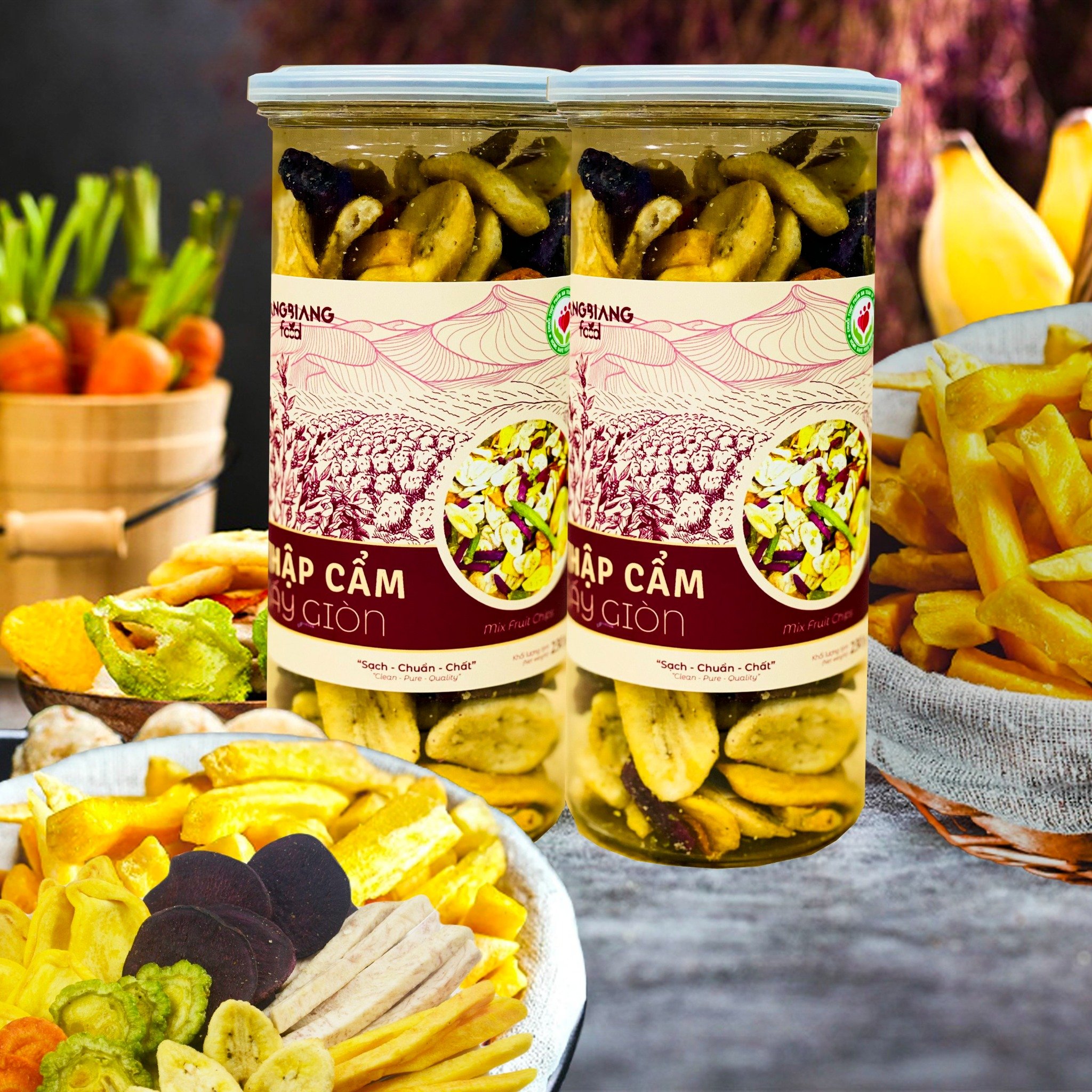Thập cẩm sấy giòn là món ăn vặt được nhiều người thích bởi thưởng thức được nhiều hương vị thơm ngon thú vị nhiều loại trái cây rau củ quả sấy có vị ngọt thanh tự nhiên đặc trưng của mỗi loại. Không đường giòn xốp, sản phẩm hoàn toàn không sử dụng hóa chất và phụ gia thực phẩm. Thập cẩm sấy giòn được đóng gói tiện dụng