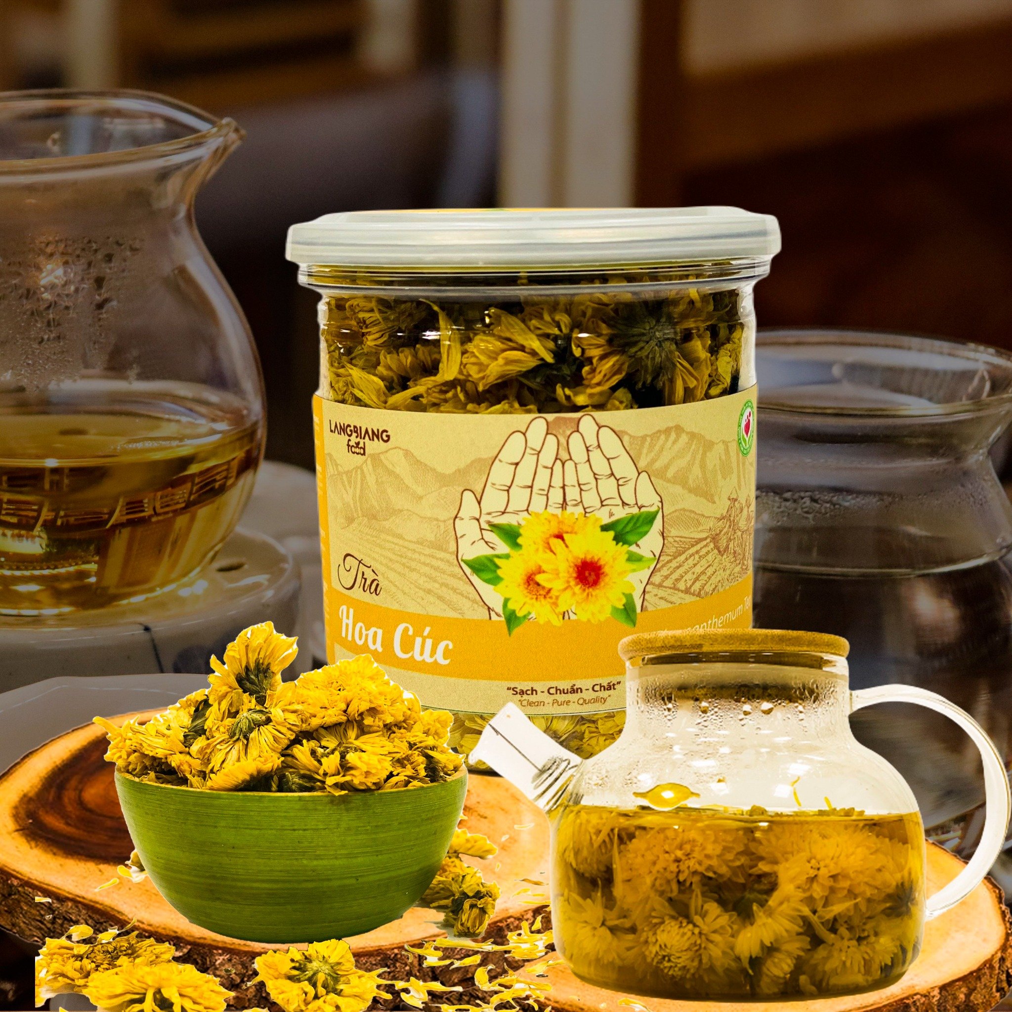 Trà hoa cúc là một thảo mộc quý không thể bỏ qua vì rất nhiều tác dụng như thanh nhiệt, giải độc, kháng khuẩn, giảm nhiệt trong các bệnh cảm nhẹ (feverfew), cảm cúm: hỗ trợ an thần, giúp ngủ ngon, giảm đau đầu mệt mỏi, giảm mỡ máu.THÀNH PHẦN: 100% hoa cúc.HƯỚNG DẪN SỬ DỤNG- Cho 2-3 gr (tương đương 5-10 hoa cúc) vào bìn