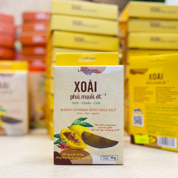 Xoài sấy dẻo phủ muối ớt Nông sản Langbiang 100% nguyên chất, tự nhiên. Được sản xuất bằng công nghệ sấy lạnh, mùi vị của của xoài được giữ nguyên như xoài tươi, đặc biệt xoài phủ muối ớt có độ dẻo dẻo, vị chua chua, ngọt ngọt và cay hít hà cho bạn thêm một trải nghiệm mới về món trái cây phủ muối ớt này.Thành phần: Xo